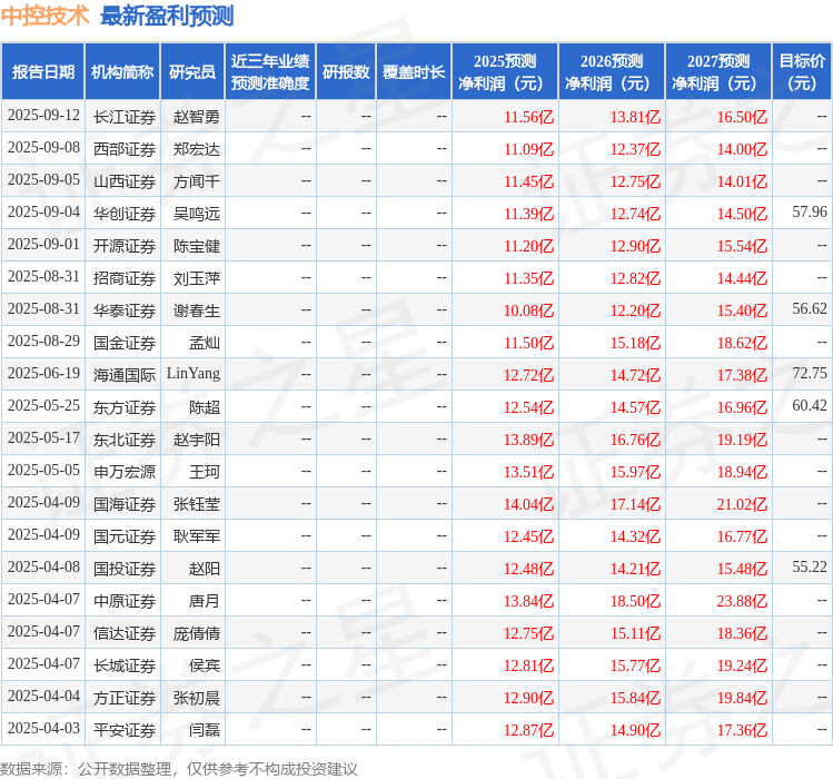 以下是详细的盈利预测信息: