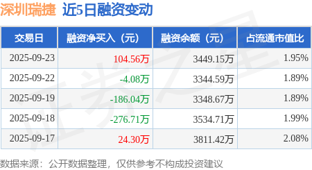 证券之星消息,9月23日,深圳瑞捷(300977)融资买入335.02万元,融资偿还230.47万元,融资净买入104.56万元,融资余额3449.15万元,近20个交易日中有12个交易日出现融资净买入。
