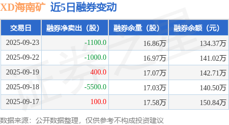 证券之星消息,9月23日,XD海南矿(601969)融资买入1874.41万元,融资偿还1817.15万元,融资净买入57.26万元,融资余额2.6亿元,近3个交易日已连续净买入累计560.06万元。