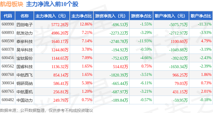 从资金流向上来看,当日航母板块主力资金净流出4.95亿元,游资资金净流出3523.72万元,散户资金净流入5.3亿元。航母板块个股资金流向见下表: