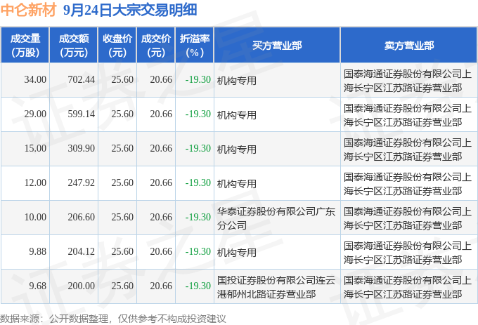 证券之星消息,9月24日中仑新材发生大宗交易,交易数据如下: