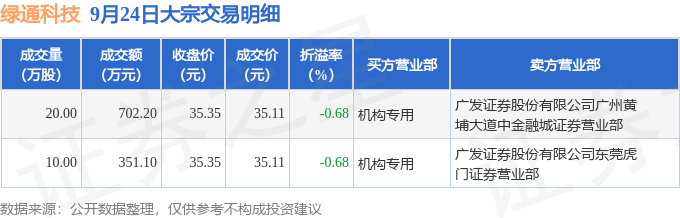 证券之星消息,9月24日绿通科技发生大宗交易,交易数据如下: