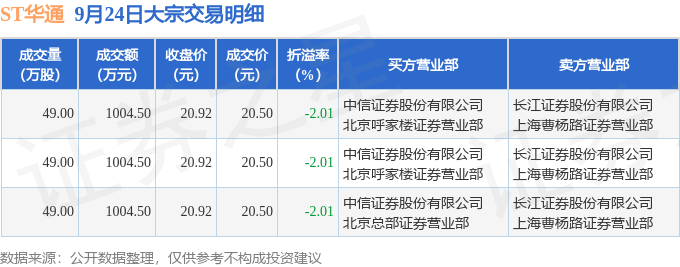 证券之星消息,9月24日ST华通发生大宗交易,交易数据如下: