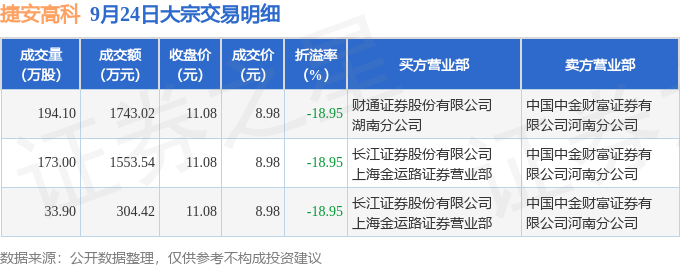 证券之星消息,9月24日捷安高科发生大宗交易,交易数据如下: