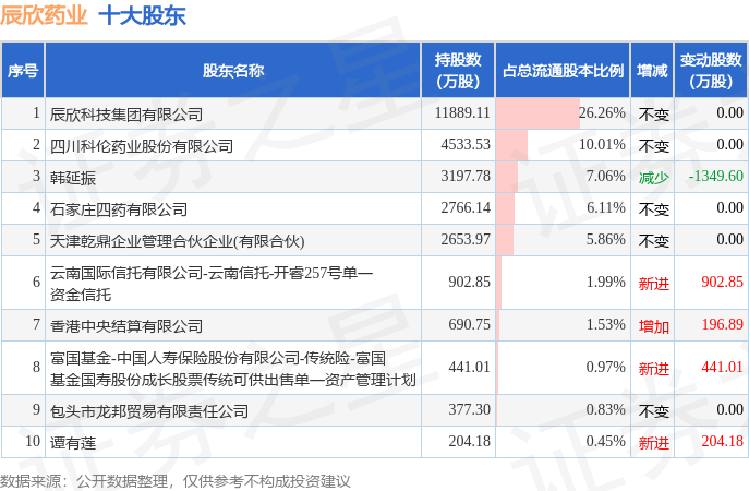 根据辰欣药业2025年中报公布的十大股东详情如下: