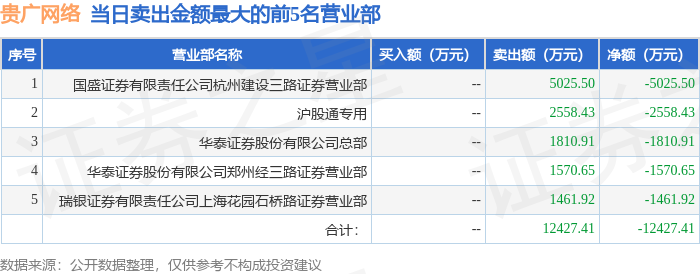 证券之星消息,沪深交易所2025年9月24日公布的交易公开信息显示,贵广网络(600996)因有价格涨跌幅限制的日收盘价格跌幅偏离值达到7%的前五只证券登上龙虎榜。此次是近5个交易日内第3次上榜。