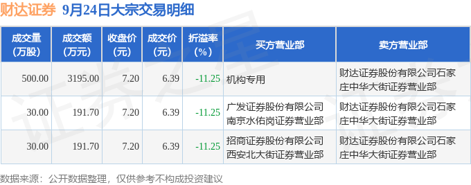 证券之星消息,9月24日财达证券发生大宗交易,交易数据如下: