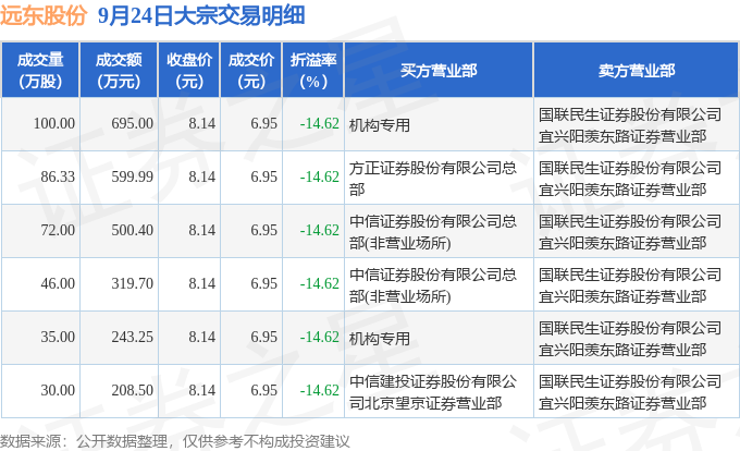 证券之星消息,9月24日远东股份发生大宗交易,交易数据如下:
