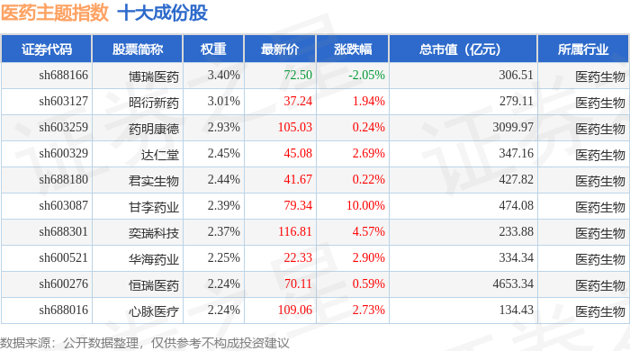 证券之星消息,9月24日,医药主题(000121)指数报收于8975.59点,涨1.61%,成交270.25亿元,换手率1.2%。当日该指数成份股中,上涨的有45家,甘李药业以10.0%的涨幅领涨,下跌的有3家,中国医药以2.08%的跌幅领跌。
