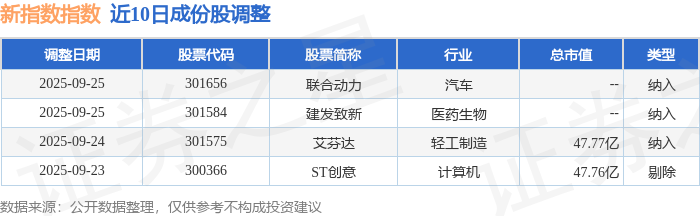 近10日内新指数(399100)成份股做了调整,新纳入了3只股票,剔除了1只股票。