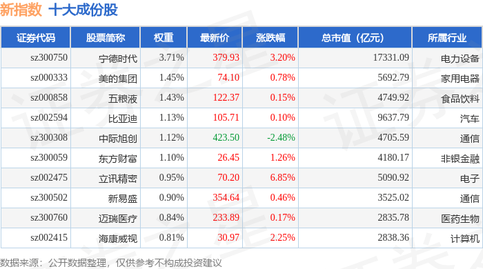 新指数(399100)十大成份股详情如下: