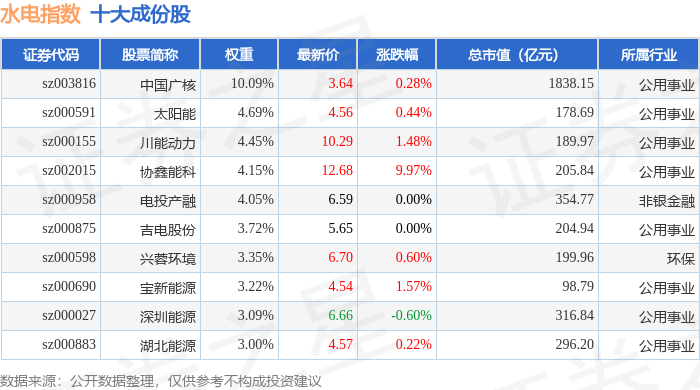 资金流向方面,水电指数(399234)成份股当日主力资金净流入合计4.68亿元,游资资金净流出合计1.77亿元,散户资金净流出合计2.91亿元。成份股资金流向详情见下表: