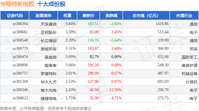 证券之星消息,9月24日,专精特新(399267)指数报收于2254.33点,涨1.37%,成交887.89亿元,换手率6.68%。当日该指数成份股中,上涨的有79家,南大光电以12.5%的涨幅领涨,下跌的有19家,豪恩汽电以7.34%的跌幅领跌。