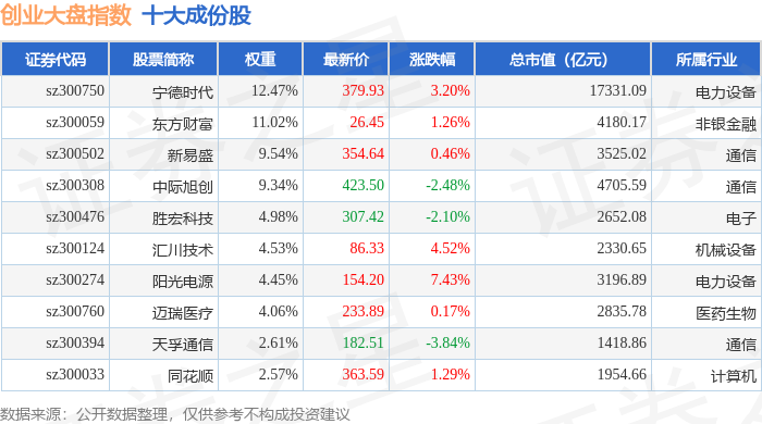 证券之星消息,9月24日,创业大盘(399293)指数报收于6426.89点,涨1.83%,成交2010.01亿元,换手率3.72%。当日该指数成份股中,上涨的有44家,迈为股份以8.94%的涨幅领涨,下跌的有5家,天孚通信以3.84%的跌幅领跌。