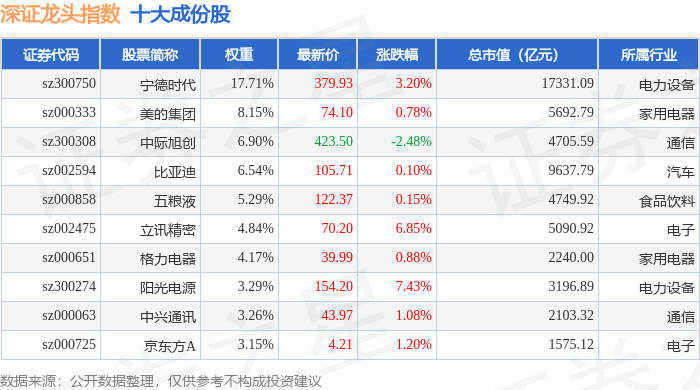 深证龙头(399653)指数十大成份股详情如下: