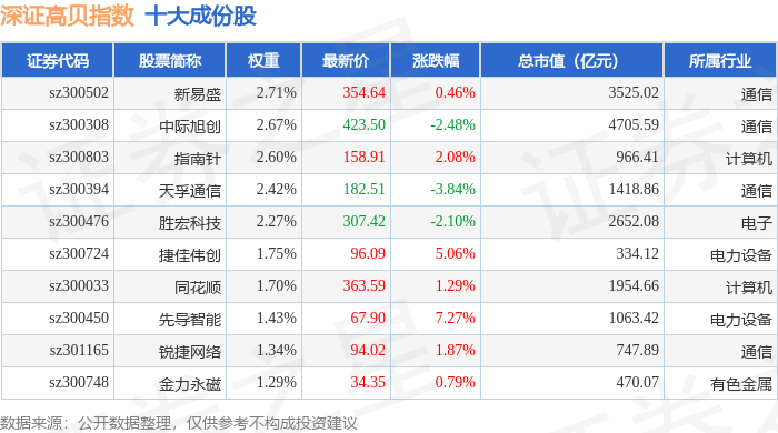 证券之星消息,9月24日,深证高贝(399662)指数报收于2395.25点,涨2.96%,成交3304.01亿元,换手率4.37%。当日该指数成份股中,上涨的有91家,长川科技以20.0%的涨幅领涨,下跌的有8家,天孚通信以3.84%的跌幅领跌。
