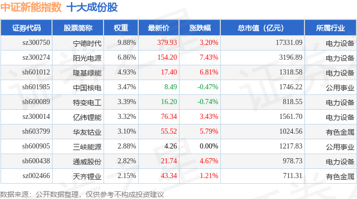 证券之星消息,9月24日,中证新能(399808)指数报收于2626.3点,涨3.61%,成交1513.7亿元,换手率1.96%。当日该指数成份股中,上涨的有72家,微导纳米以15.54%的涨幅领涨,下跌的有6家,科华数据以3.59%的跌幅领跌。