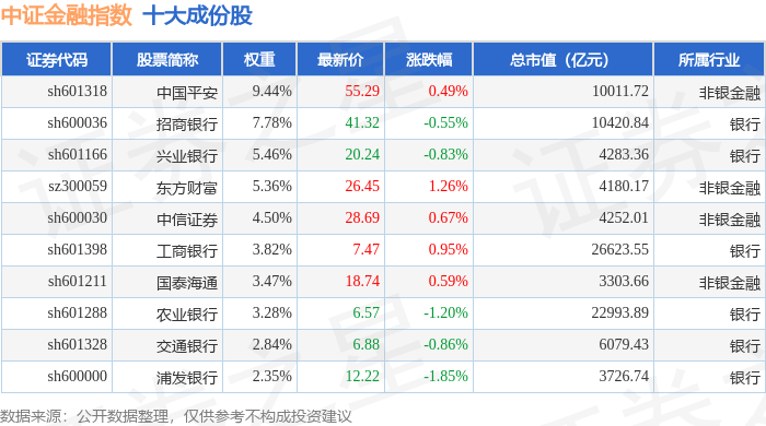 中证金融(399934)指数十大成份股详情如下: