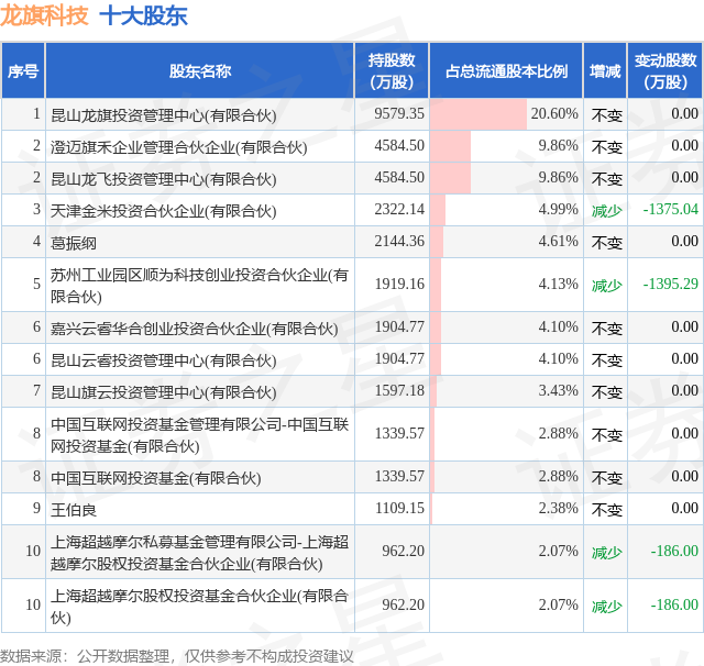 根据龙旗科技2025年中报公布的十大股东详情如下: