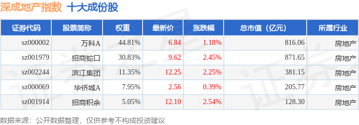 证券之星消息,9月24日,深成地产(971001)指数报收于515.71点,涨1.7%,成交29.32亿元,换手率1.59%。当日该指数成份股中,上涨的有5家,招商积余以2.54%的涨幅领涨。