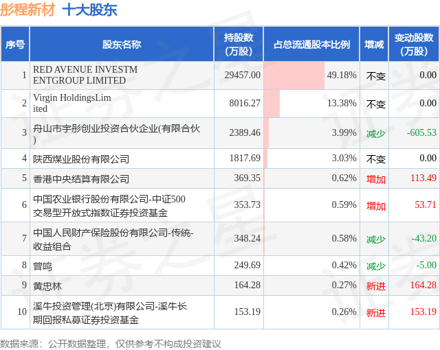 根据彤程新材2025年中报公布的十大股东详情如下: