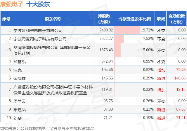 根据康强电子2025年中报公布的十大股东详情如下: