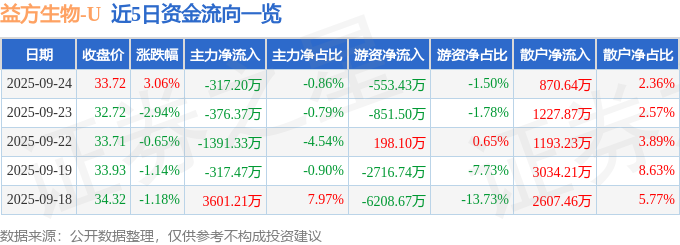 证券之星消息,截至2025年9月24日收盘,益方生物(688382)报收于33.72元,上涨3.06%,换手率2.67%,成交量11.13万手,成交额3.69亿元。