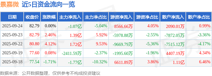 证券之星消息,截至2025年9月24日收盘,景嘉微(300474)报收于82.79元,上涨0.0%,换手率6.31%,成交量25.64万手,成交额21.15亿元。