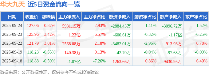 证券之星消息,截至2025年9月24日收盘,华大九天(301269)报收于127.06元,上涨0.87%,换手率2.94%,成交量16.06万手,成交额20.4亿元。