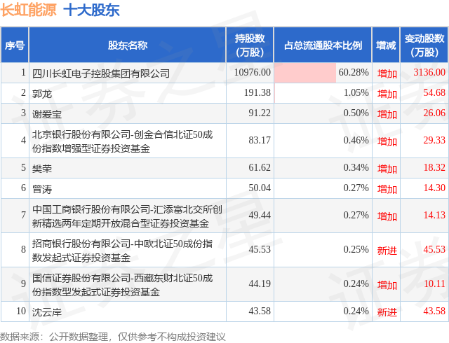 根据长虹能源2025年中报公布的十大股东详情如下: