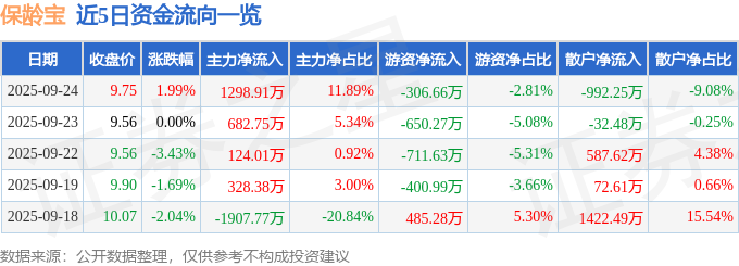 证券之星消息,截至2025年9月24日收盘,保龄宝(002286)报收于9.75元,上涨1.99%,换手率3.04%,成交量11.23万手,成交额1.09亿元。