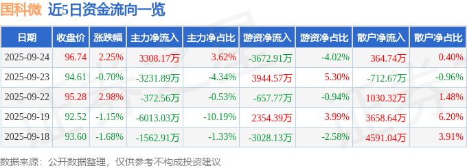 证券之星消息,截至2025年9月24日收盘,国科微(300672)报收于96.74元,上涨2.25%,换手率4.5%,成交量9.47万手,成交额9.14亿元。