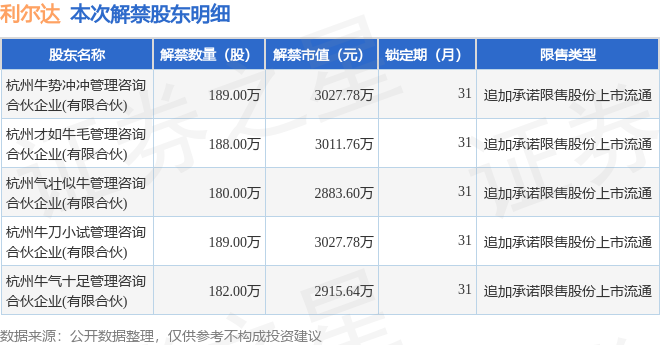 证券之星消息,根据市场公开信息整理,利尔达(832149)于9月25日将有928.0万股限售股份解禁,为公司追加承诺限售股份上市流通,占公司总股本2.2%。(本次数据根据历史公告整理得出,实际情况以上市公司最新公告为准)最近一年内,该股累计解禁87.19万股,占总股本的0.21%。本次解禁后,公司还有2.97亿股限售股份,占总股本70.43%。具体如下图所示:
