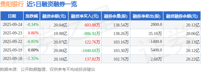 证券之星消息,截至2025年9月24日收盘,贵阳银行(601997)报收于5.84元,下跌0.34%,换手率0.89%,成交量32.39万手,成交额1.9亿元。