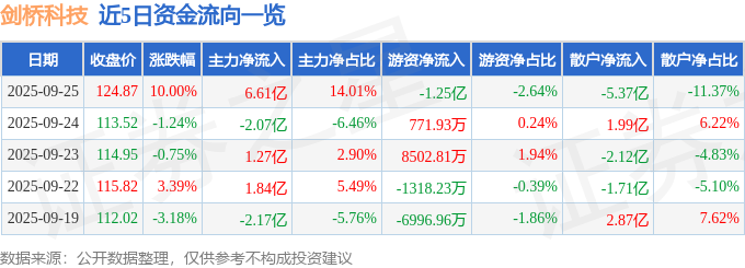 9月25日的资金流向数据方面,主力资金净流入6.61亿元,占总成交额14.01%,游资资金净流出1.25亿元,占总成交额2.64%,散户资金净流出5.37亿元,占总成交额11.37%。