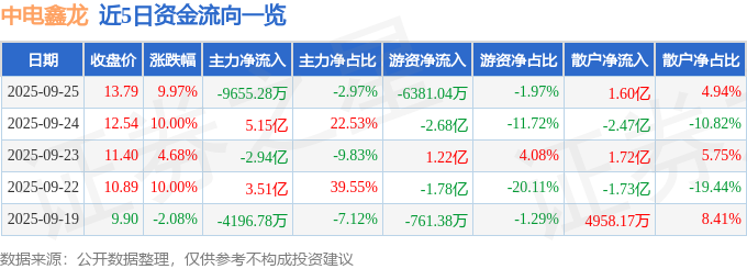 9月25日的资金流向数据方面,主力资金净流出9655.28万元,占总成交额2.97%,游资资金净流出6381.04万元,占总成交额1.97%,散户资金净流入1.6亿元,占总成交额4.94%。