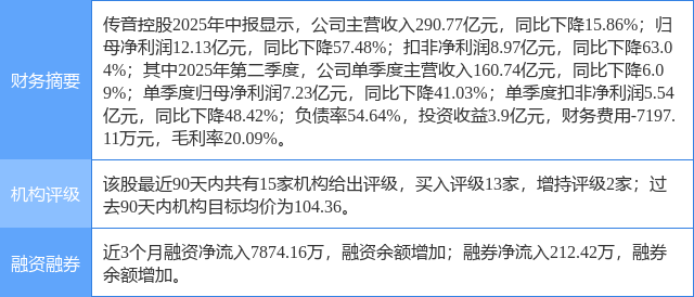 2025年9月3日,太平洋研究员张世杰,罗平发布了对传音控股的研报《25H1业绩承压,新兴市场领先优势不变》,该研报对传音控股给出“买入”评级。研报中预计2025-2027年公司实现营收723.99、810.63、932.64亿元,实现归母净利润39.21、50.82、69.32亿元,对应PE26.18、20.20、14.80x,维持公司“买入”评级。证券之星数据中心根据近三年发布的研报数据计算,该研报作者对此股的盈利预测准确度为95.38%。