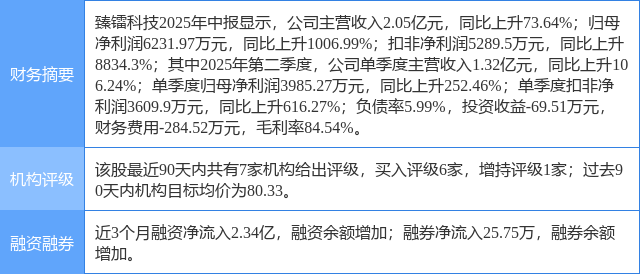 2025年9月1日,中航证券研究员滕明滔,梁晨,张超发布了对臻镭科技的研报《2025年半年报点评:半年报业绩创历史新高,有望持续受益于卫星互联网的加速建设》,该研报对臻镭科技给出“买入”评级。研报中预计公司2025-2027年的营业收入分别为4.51亿元、6.31亿元和8.50亿元,归母净利润分别为1.30亿元、1.82亿元及2.54亿元,EPS分别为0.61元、0.85元、1.18元,我们维持“买入”评级,当前股价分别对117倍、84倍及60倍PE。证券之星数据中心根据近三年发布的研报数据计算,该研报作者对此股的盈利预测准确度为13.88%。