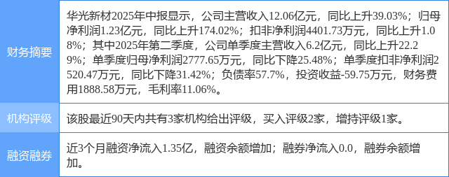 2025年8月31日,民生证券研究员汪海洋,谢雨晨发布了对华光新材的研报《2025年中报点评:业绩符合预期,液冷与机器人新领域加速突破》,该研报对华光新材给出“买入”评级。研报中预计公司2025-2027年实现营收25.12、34.21、43.56亿元,同比增速分别为31.0%、36.2%、27.3%,归母净利润1.95、1.90、2.44亿元,同比增速分别为142.1%、-2.5%、28.0%,对应PE为29、30、23倍,考虑公司中温钎料业务增长稳健,新能源汽车及电子连接业务高速成长,在AI算力液冷服务器、机器人等新兴领域的布局已初见成效,维持“推荐”评级。证券之星数据中心根据近三年发布的研报数据计算,该研报作者对此股的盈利预测准确度为52.83%。