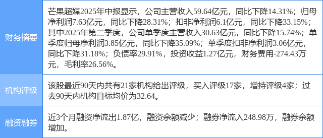 2025年8月29日,东吴证券研究员张良卫,周良玖,张文雨发布了对芒果超媒的研报《2025年半年报点评:业绩阶段性承压,核心主业彰显韧性》,该研报对芒果超媒给出“买入”评级。证券之星数据中心根据近三年发布的研报数据计算,该研报作者对此股的盈利预测准确度为62.81%。