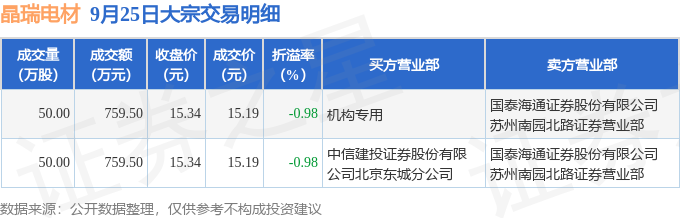 证券之星消息,9月25日晶瑞电材发生大宗交易,交易数据如下: