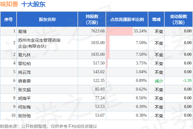 根据味知香2025年中报公布的十大股东详情如下: