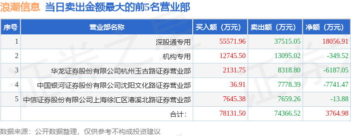 从龙虎榜公布的当日买卖数据来看,机构合计净买入1.3亿元,北向资金合计净买入1.81亿元。陈小群、曲江池等知名游资榜上有名。(知名游资陈小群一般指中国银河证券股份有限公司大连黄河路证券营业部席位、知名游资曲江池一般指国投证券股份有限公司西安曲江池南路证券营业部席位,根据市场资料整理,仅供参考)