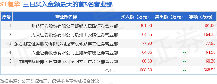 证券之星消息,沪深交易所2025年9月25日公布的交易公开信息显示,ST复华(600624)因ST、*ST证券连续三个交易日内收盘价格跌幅偏离值累计达到12%的证券登上龙虎榜。此次是近5个交易日内第1次上榜。