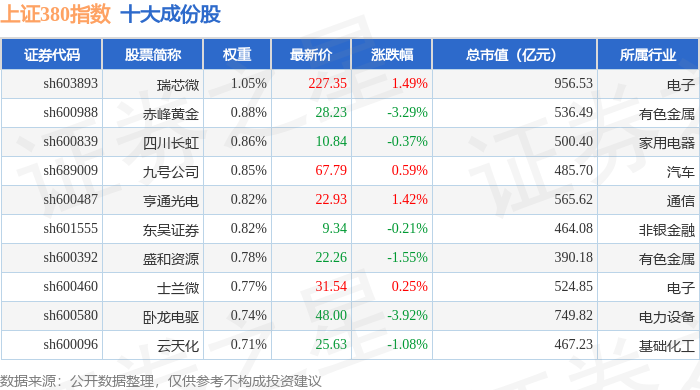 证券之星消息,9月25日,上证380(000009)指数报收于6542.72点,涨0.08%,成交2314.94亿元,换手率1.94%。当日该指数成份股中,上涨的有138家,环旭电子以10.02%的涨幅领涨,下跌的有234家,博瑞医药以8.4%的跌幅领跌。