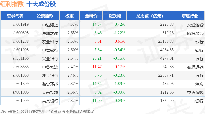 证券之星消息,9月25日,红利指数(000015)报收于2967.07点,跌0.65%,成交238.02亿元,换手率0.23%。当日该指数成份股中,上涨的有7家,鄂尔多斯以1.11%的涨幅领涨,下跌的有43家,渝农商行以3.52%的跌幅领跌。
