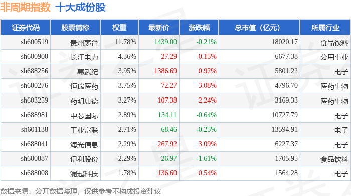 非周期(000064)指数十大成份股详情如下: