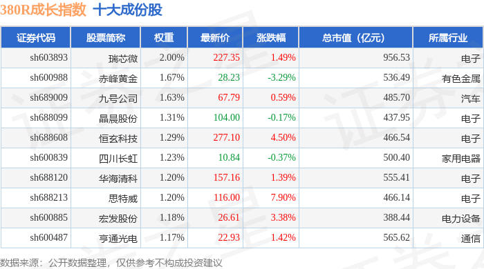 证券之星消息,9月25日,380R成长(000119)指数报收于4442.01点,涨0.43%,成交2005.5亿元,换手率2.3%。当日该指数成份股中,上涨的有117家,环旭电子以10.02%的涨幅领涨,下跌的有158家,博瑞医药以8.4%的跌幅领跌。