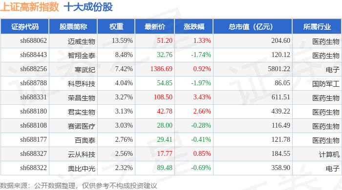证券之星消息,9月25日,上证高新(000131)指数报收于4030.58点,涨0.36%,成交649.87亿元,换手率2.83%。当日该指数成份股中,上涨的有26家,臻镭科技以6.0%的涨幅领涨,下跌的有23家,博瑞医药以8.4%的跌幅领跌。