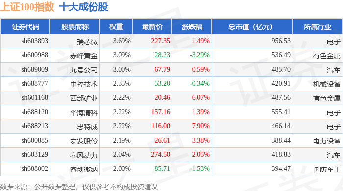上证100(000132)指数十大成份股详情如下: